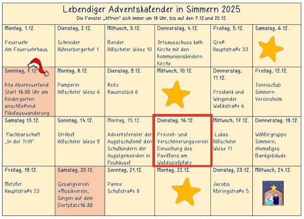 Unsere nächsten Aktionen: Dienstag 16.12.2025: